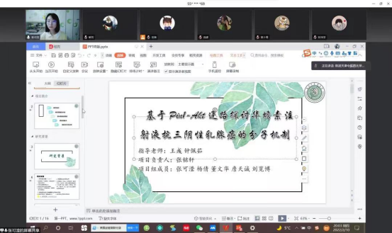 大学生参与创新创业对于培养学生创新思维和提升实践能力具有积极的推动作用。2022年2月10日,基础医学实验教学示范中心挂靠的中西医结合学院,大学生创新创业项目线上答辩如期举行。会议伊始,指导老师对学生积极参与大创项目申报的行动给予了肯定,表扬了同学们的求知热情。此次大创申报共有39组项目,其中自然科学类20组,非自然科学类19组,参与者涵盖了各年级各专业。